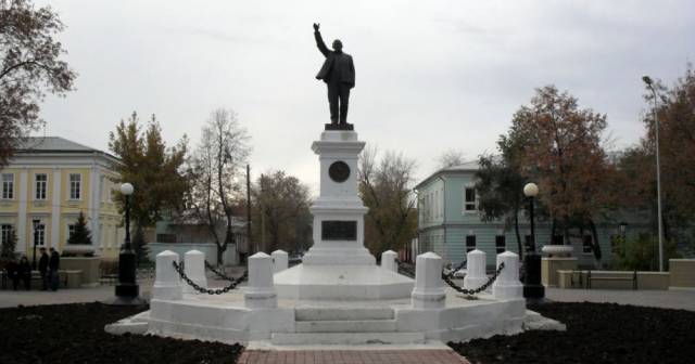 Все дело в том, что постамент долгое время не пустовал, на нем был установлен памятник Владимиру Ленину из бронзы. В центре Оренбурга он был поставлен еще в 1925 году, деньги на него были собраны рабочими и крестьянами, поэтому памятник имеет особое историческое значение, как для представителей коммунистической партии, так и для большой части горожан. Несколько лет назад памятник убрали, отправив на реставрацию, а обратно так и не привезли. Постамент был огорожен забором из профлиста.