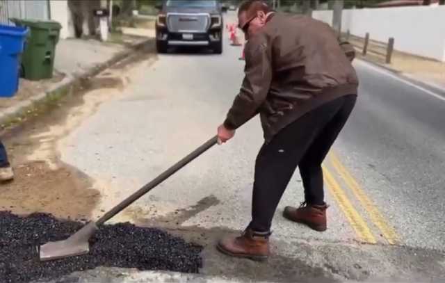 Дело в том, что в районе, где проживает Шварценеггер люди страдали от выбоины на дороге. Местные дорожные службы как-то не проявили должного внимания к жалобам населения, несмотря на то что от ощутимой дорожной ямы несколько недель страдали владельцы велосипедов и автомобилей. И тут на помощь пришел Арни. Актер не стал пользоваться своим особым статусом, чтобы повлиять на ситуацию, а просто позвал несколько помощников и засыпал выбоину, сделав работу за дорожников.