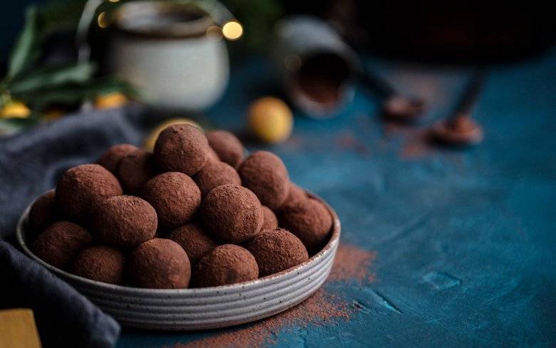 - Из остывшей массы сформируйте шарики и обваляйте в какао-порошке.