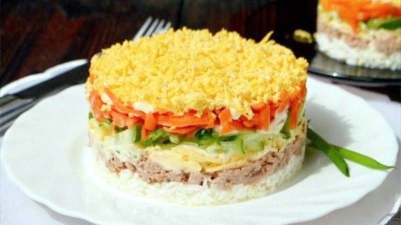 Слоеный салат с консервированным тунцом: вкусный и простой в приготовлении, а исчезнет со стола в мгновение ока