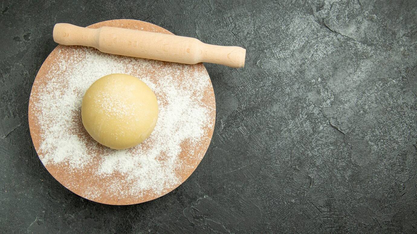 - Пшеничную муку смешайте с содой и солью, а потом просейте в сметанную смесь и замесите однородное, гладкое тесто, которое не липнет к рукам.