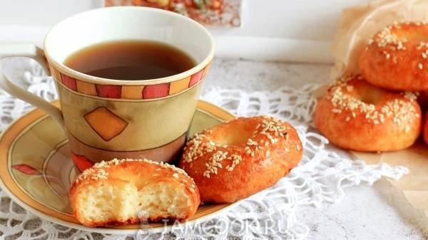 Бублики получаются немного плотными сверху и очень нежными внутри.