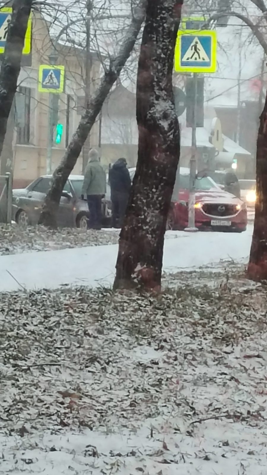 Первый обильный снег повлиял на дорожную обстановку и в Череповце. Две машины столкнулись на перекрестке Ленина - Луначарского.