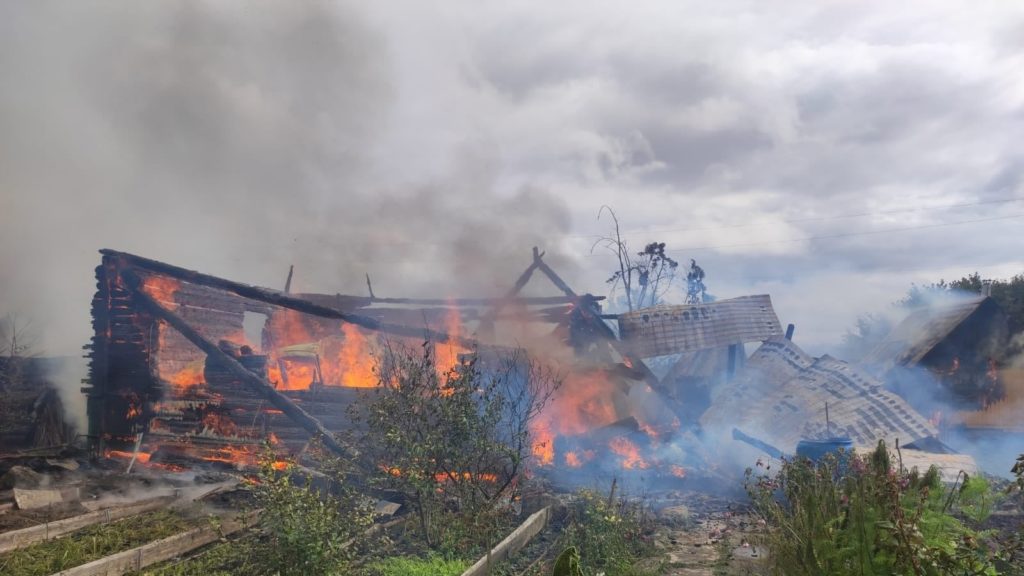 Крупный пожар под Шексной: сгорели дом, повреждены баня и хозпостройка