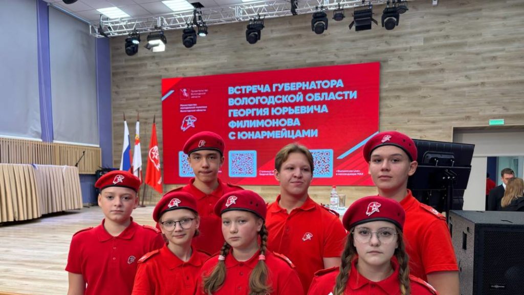 Всего задать вопрос губернатору пришли около 200 юнармейцев. Некоторые из них служили в Вооруженных силах России и защищали честь страны на передовой. Участниками встречи стали, в том числе, призер международной военно-патриотической игры «Наследники Победы» Кирилл Лукин и председатель Регионального совета юнармейских командиров Дарина Барболина. Георгий Филимонов передал им флаг Вологодской области и флаг с изображением летчика-космонавта П.И. Беляева. Оба побывали в космосе на борту пилотируемого корабля «Союз МС-27».
