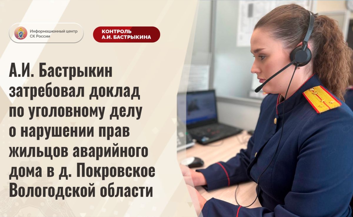 Многоквартирный дом на улице Молодежной 1973 года постройки в непригодном состоянии: деревянные несущие конструкции и кровля разрушаются, коммуникации изношены. В 2021 году здание признали аварийным, но мер к предоставлению людям благоустроенного жилья не принимают. Обращения в разные инстанции результатов не дали, дом не расселен. С этим вопросом на днях одна из жительниц дома позвонила на единую многоканальную телефонную линию Информационного центра СКР. В СУ СК России по Вологодской области возбудили уголовное дело, а председатель Следственного комитета России Александр Бастрыкин затребовал у руководителя управления Геннадия Яшина доклад о предварительных и окончательных результатах следствия. Исполнение поручения поставили на контроль в центральном аппарате СК.