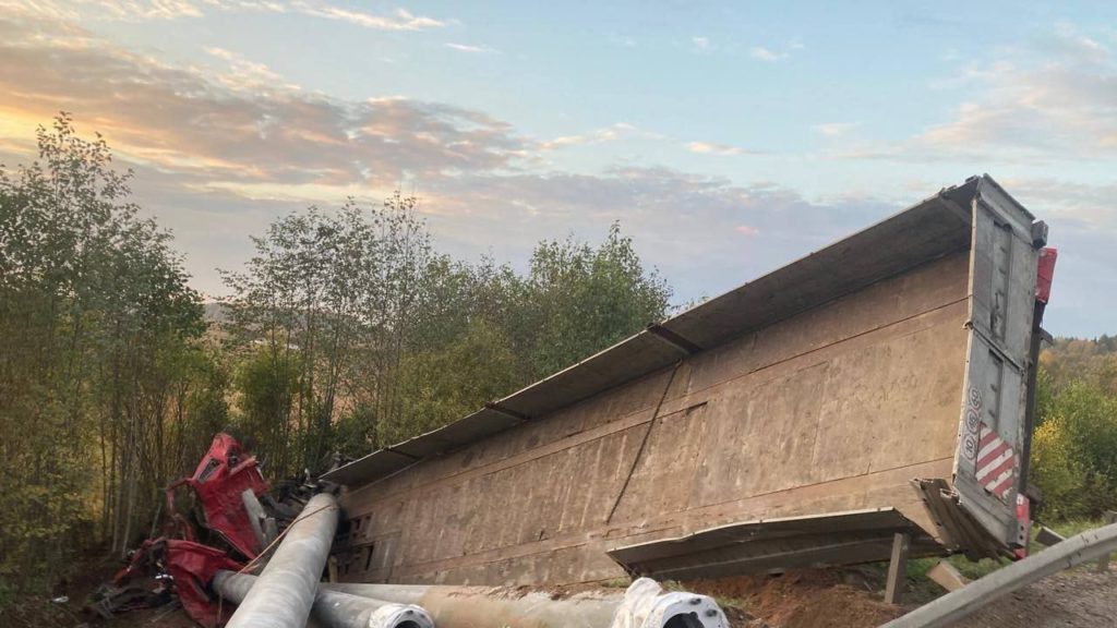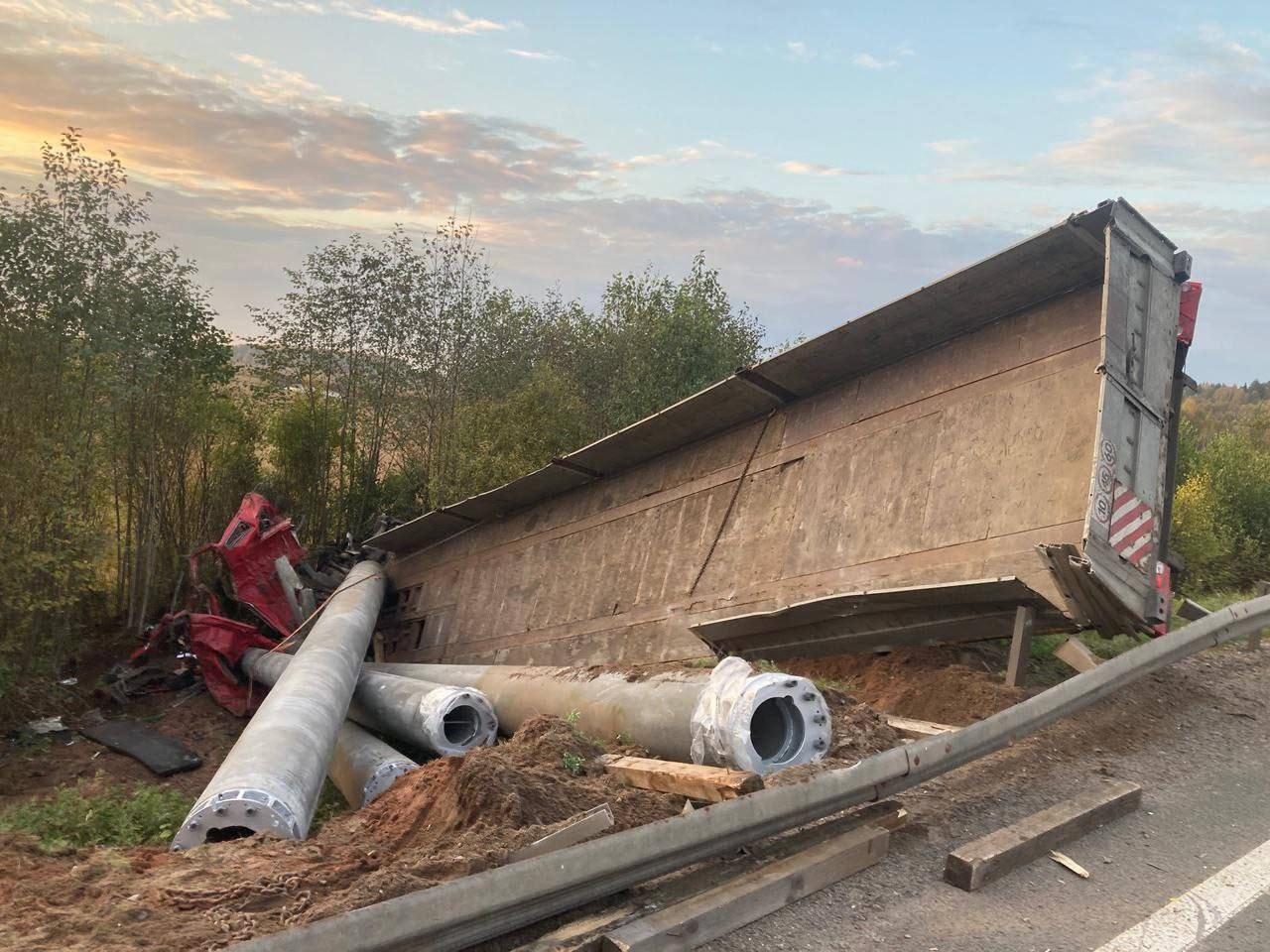 ДТП случилось сегодня в 16:40 на 340-м км трассы А-119 под Вытегрой. По предварительной информации, водитель груженой фуры MAN не справился с управлением и съехал в кювет. После этого грузовик перевернулся. Водитель погиб на месте.