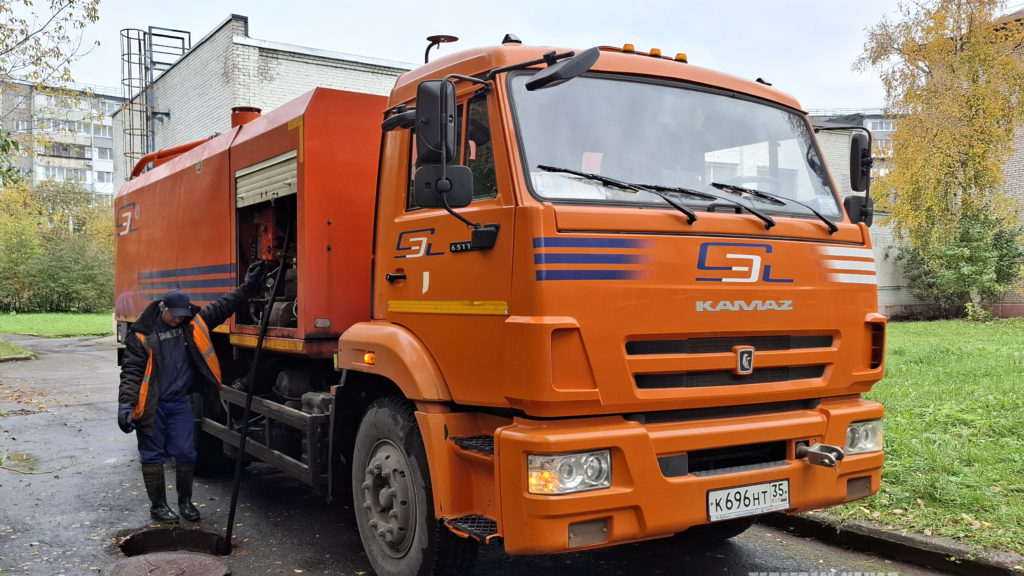 Промывка сетей идет в том числе и гидродинамическим методом, который не нарушает целостности труб с помощью машины ДКТ. Это специальная коммунальная техника на базе КАМАЗ, выпускаемая компанией «Доркомтехника». Небольшой мусор машина откачивает в специальный бак, далее струей под большим давлением размывают остаточную грязь. Всего у города три таких машины.