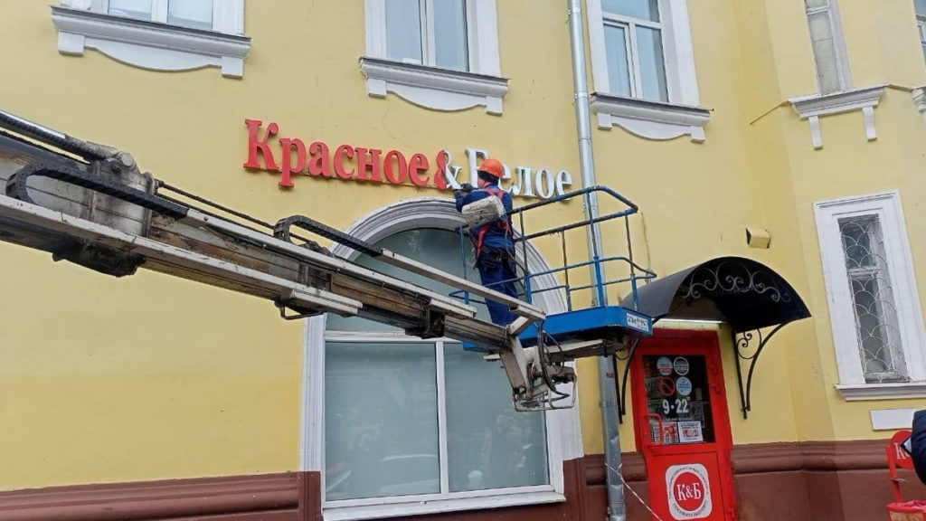 «Сегодня в Череповце начался демонтаж вывесок с магазинов сети алкомаркетов «Красное&Белое». Убираем вывески, размещённые на фасадах многоквартирных домов. Они установлены с нарушением требований правил благоустройства, которые действуют в городе. Компания была уведомлена об этом, однако нарушений не устранила. Подобная участь ждёт и торговые точки других сетевых алкомаркетов в МКД. «Обезличить» предстоит как минимум 40 магазинов в Вологде и Череповце, торгующих спиртным. Продолжаем большую работу по приведению внешнего облика наших городов в соответствие. Особое внимание уделяем бизнесу, специализирующемуся на продаже алкогольной продукции», – сказал Георгий Филимонов.