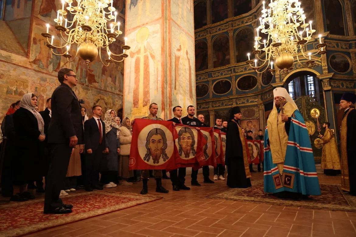 Освящение стягов провел митрополит Вологодский и Кирилловский Савва. Глава региона выразил признательность Владыке за формирование совместной духовной силы вологжан, всего русского народа, Вологодской области как части великой национальной, многоконфессиональной России.