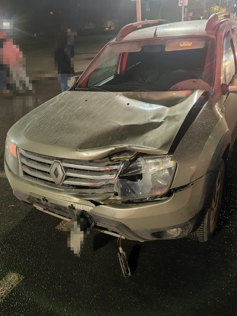 Как сообщает отдел Госавтоинспекции УМВД России «Череповец», водитель автомобиля «Рено Дастер», двигаясь со стороны центра города по проспекту Победы на зелёный свет, сбил мужчину. Тот в это время решил пересечь дорогу на красный. 38-летнего пострадавшего с травмами доставили в областную больницу № 2. Силу удара можно понять по снимку.