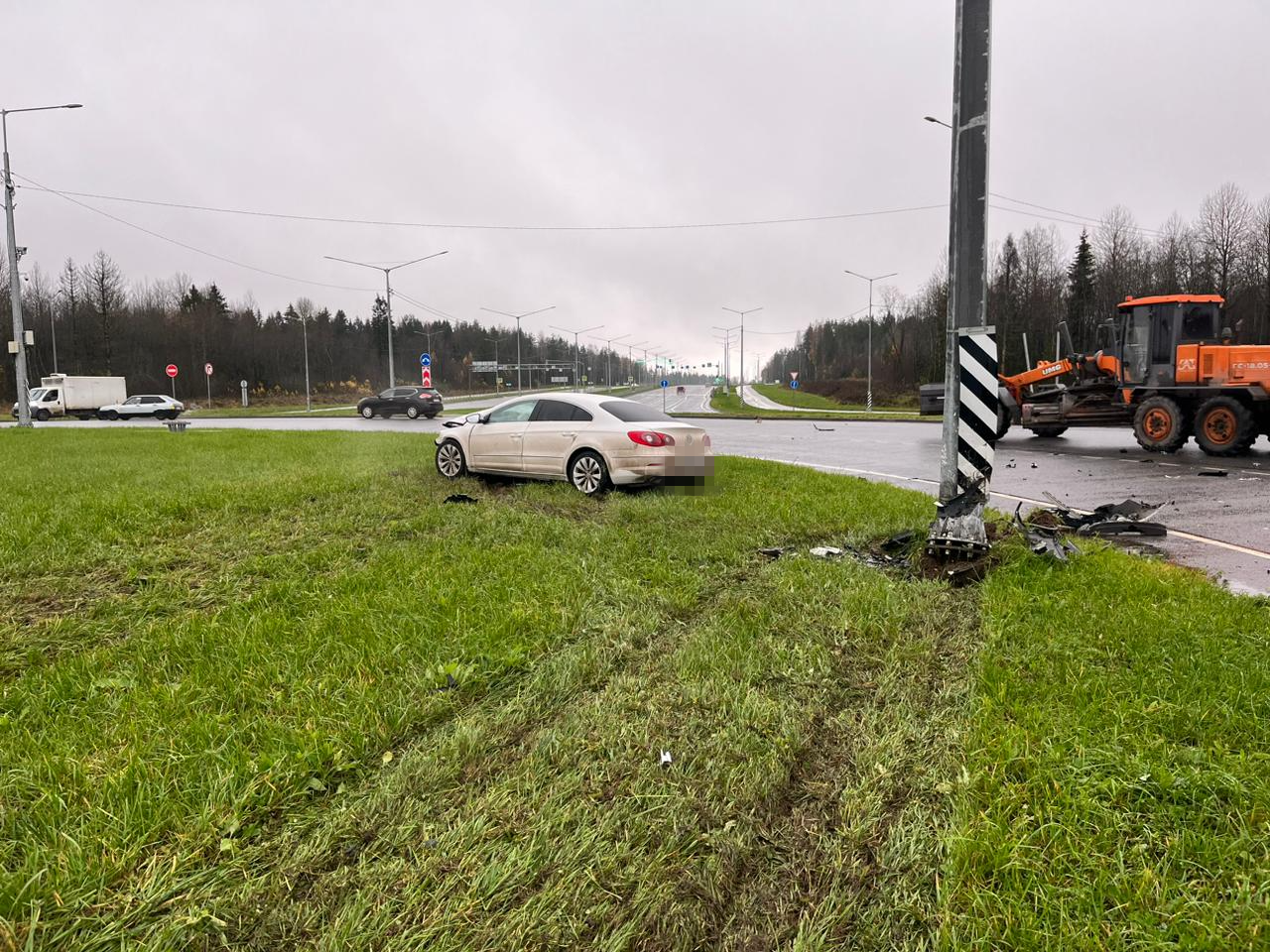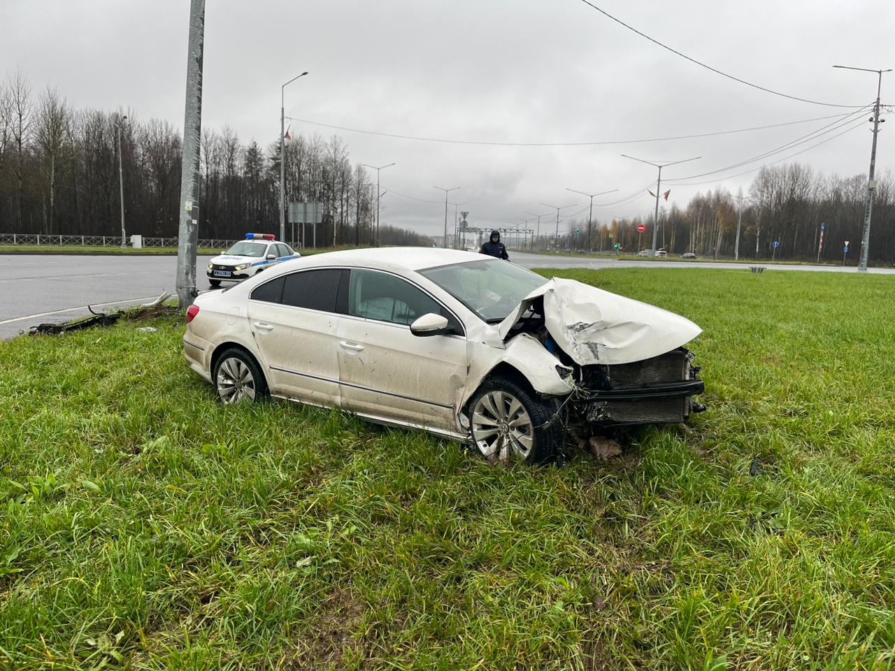 Инцидент произошел 29 октября в 8:43 на кольцевом перекрестке Шекснинского проспекта и Южного шоссе. 39-летний водитель автомобиля «Фольксваген Пассат» врезался в бордюрный камень, после чего - в световую опору. А затем покинул место аварии.