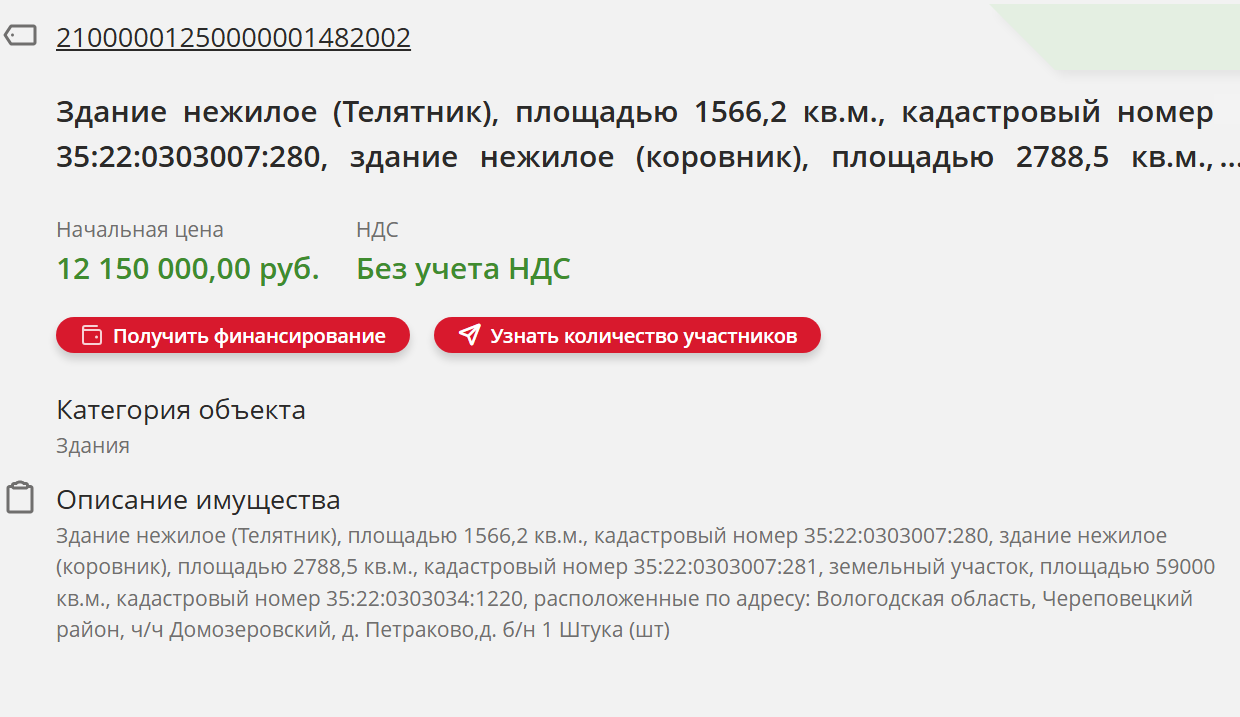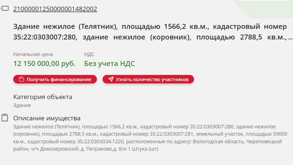 Информация опубликована на электронной площадке РТС-тендер. Начальная цена составляет 12,15 млн рублей, заявки от потенциальных покупателей принимаются до 16 декабря 2025 года. Сам аукцион при наличии заявок должен пройти 18 декабря.