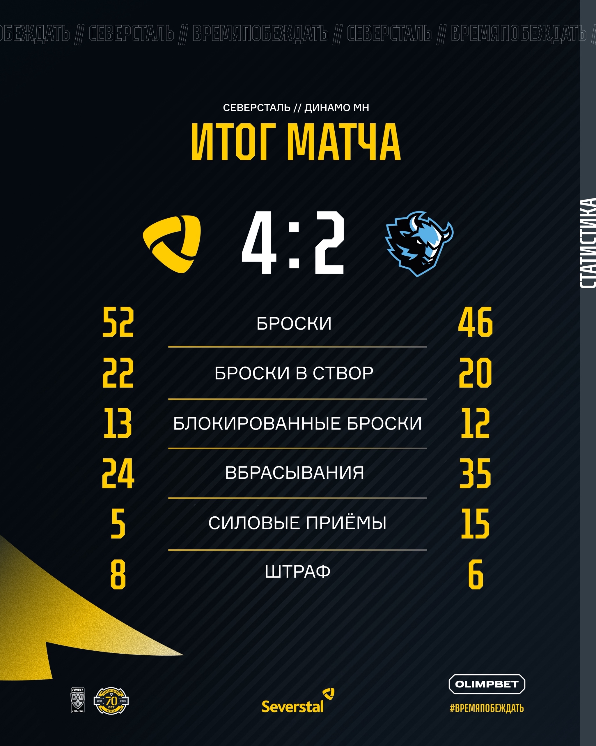 Дублем отметился Адам Лишка, по одному голу забили Александр Скоренов и Данил Аймурзин. Для минчан это уже девятое поражение в Череповце.