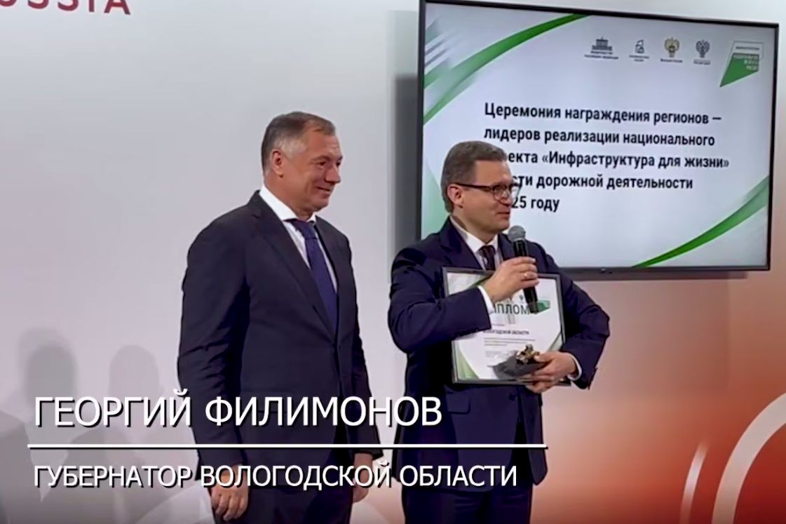 Губернатор Вологодской области Георгий Филимонов получил «Золотой каток» из рук заместителя председателя правительства РФ Марата Хуснуллина. Это высшая награда, которая присваивается регионам страны за успешную реализацию показателей национального проекта «Инфраструктура для жизни», сообщает пресс-служба губернатора Вологодской области.