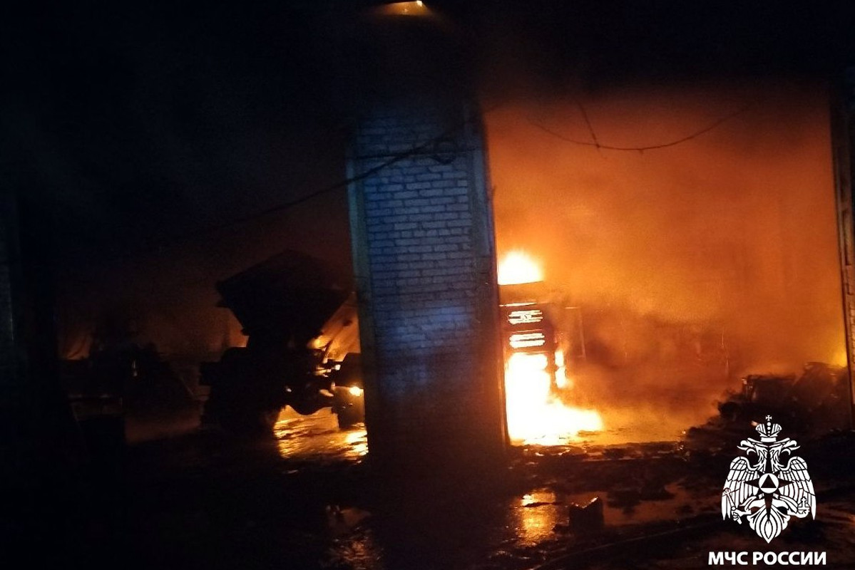 Пострадавших нет, но пожар был очень серьезным - огонь распространился на 384 квадратных метра. Повреждены внутренняя отделка, деревянные конструкции кровли, имущество и 5 единиц лесозаготовительной техники. Специалисты МЧС считают причиной пожара аварийный режим работы электрооборудования. Одноэтажные кирпичные гаражи, где произошел пожар, принадлежат одному из местных акционерных обществ.
