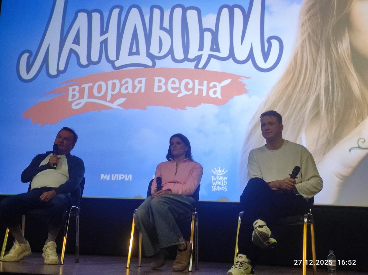 Сегодня в Череповце в кинотеатре «Комсомолец» состоялась первая зрительская премьера долгожданного продолжения сериала «Ландыши» — «Ландыши. Вторая весна». В специальном показе приняли участие актёры и продюсер фильма.