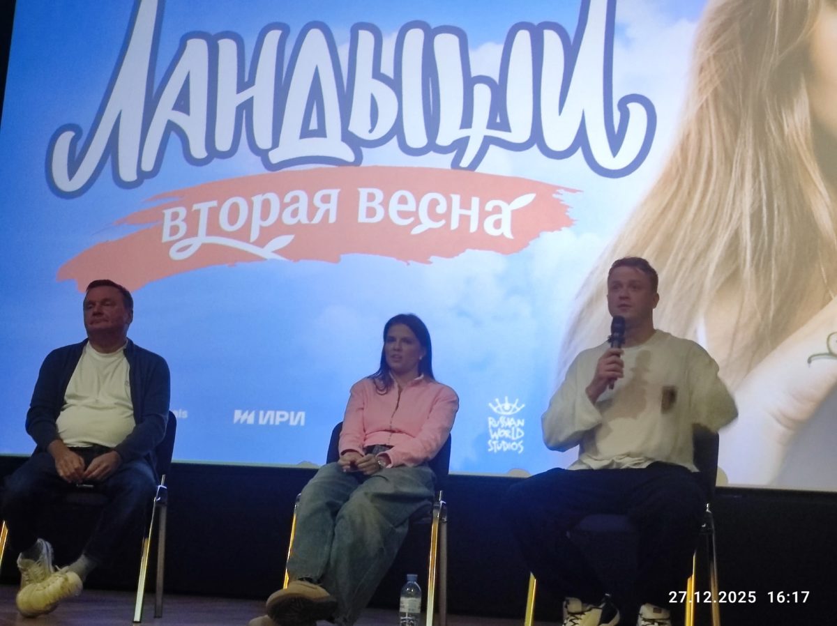 Сегодня в Череповце в кинотеатре «Комсомолец» состоялась первая зрительская премьера долгожданного продолжения сериала «Ландыши» — «Ландыши. Вторая весна». В специальном показе приняли участие актёры - Ника Здорик, Евгений Банифатов и продюсер фильма Юрий Сапронов.