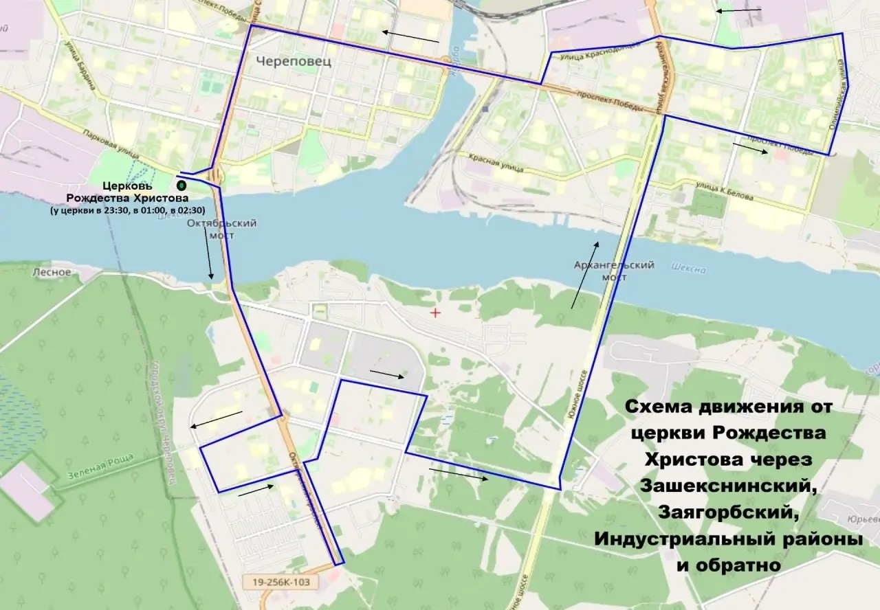 Через Северный, Заягорбский и Индустриальный районы они будут отправляться в 23:30, 0:30, 1:30, 2:30, 3:30. А через Зашекснинский, Заягорбский и Индустриальный районы - в 23:30, 1:00, 2:30.