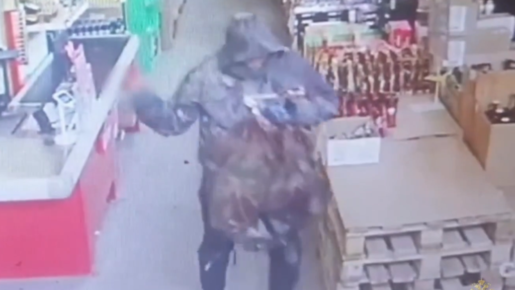 Как выяснилось, она обратила на него внимание задолго до инцидента. Он регулярно приходил в магазин, иногда с санками или тюбингом. На этот раз был с рюкзаком. Продавец наблюдала за ним и заметила, что он движется к выходу с несколькими банками кофе, минуя кассы. Она окликнула его, потребовав остановиться и вернуть товар, на что он ответил непристойным жестом. Она попыталась остановить его уже на улице, на что он махнул в её сторону предметом, похожим на ножницы, и скрылся.