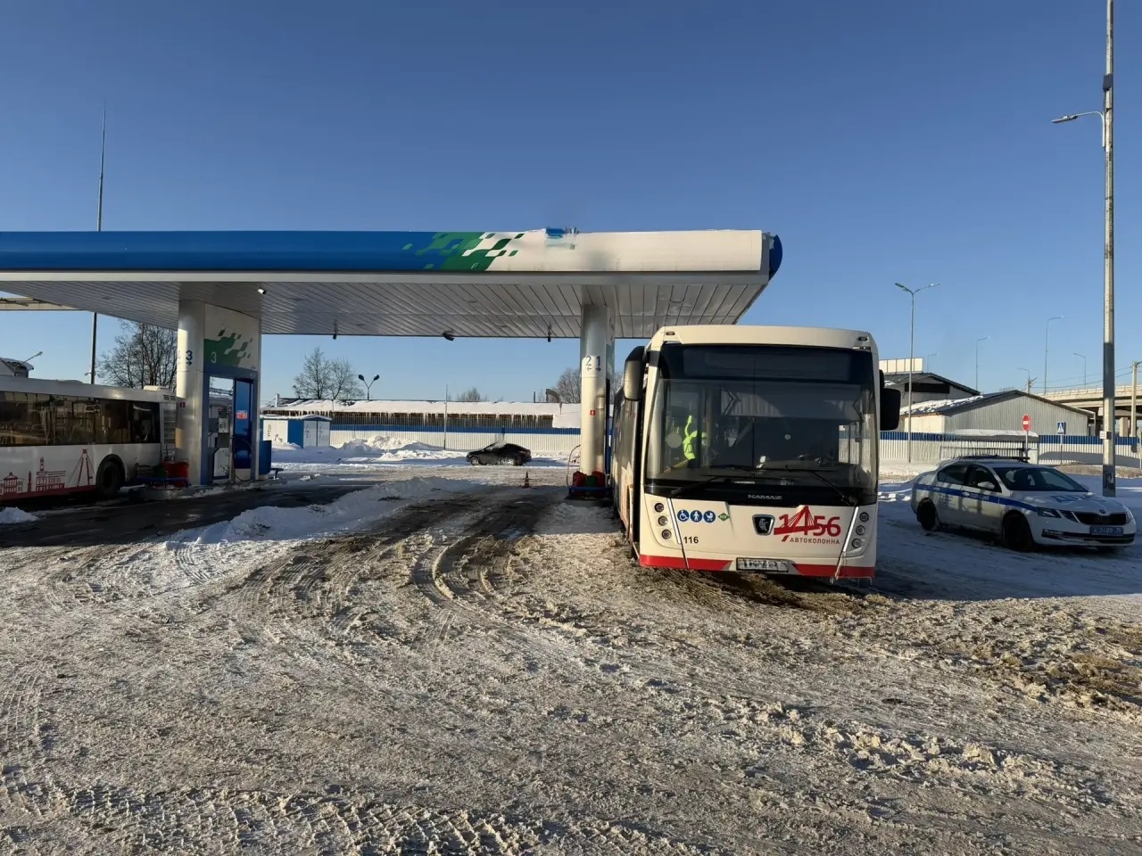 В Череповце на АЗС занесло автобус, сбит заправщик