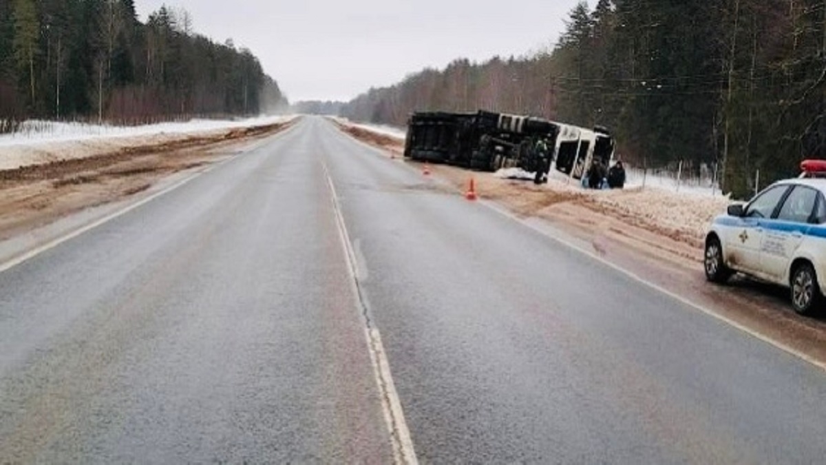 Как сообщает управление ГАИ по Вологодской области, в 8:05 на 246 км дороги А-114 Вологда — Р-21 «Кола» житель Беларуси 1987 г.р. за рулем грузовика SITRAK с полуприцепом съехал в правый кювет. Водителю повезло – обошлось даже без госпитализации: после осмотра фельдшером скорой помощи мужчину оставили на месте ДТП. По данным ГАИ, причиной аварии стало то, что он «не обеспечил безопасную скорость движения и ни учел дорожные условия».