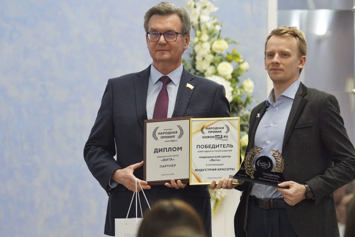 Андрей Пулин вскрыл конверт и назвал победителя - медицинский центр «Вита». Награду и диплом партнёра народной премии «Город Че» вручили главному врачу Денису Голубеву.