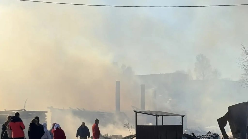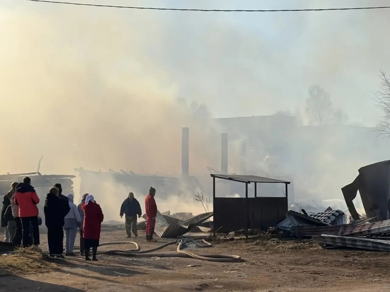 При пожаре в райцентре сгорели торговый центр, магазин, аптека и жилой дом