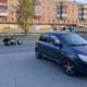 Водитель одной иномарки не пропустил другую, и та вынесла его на газон.