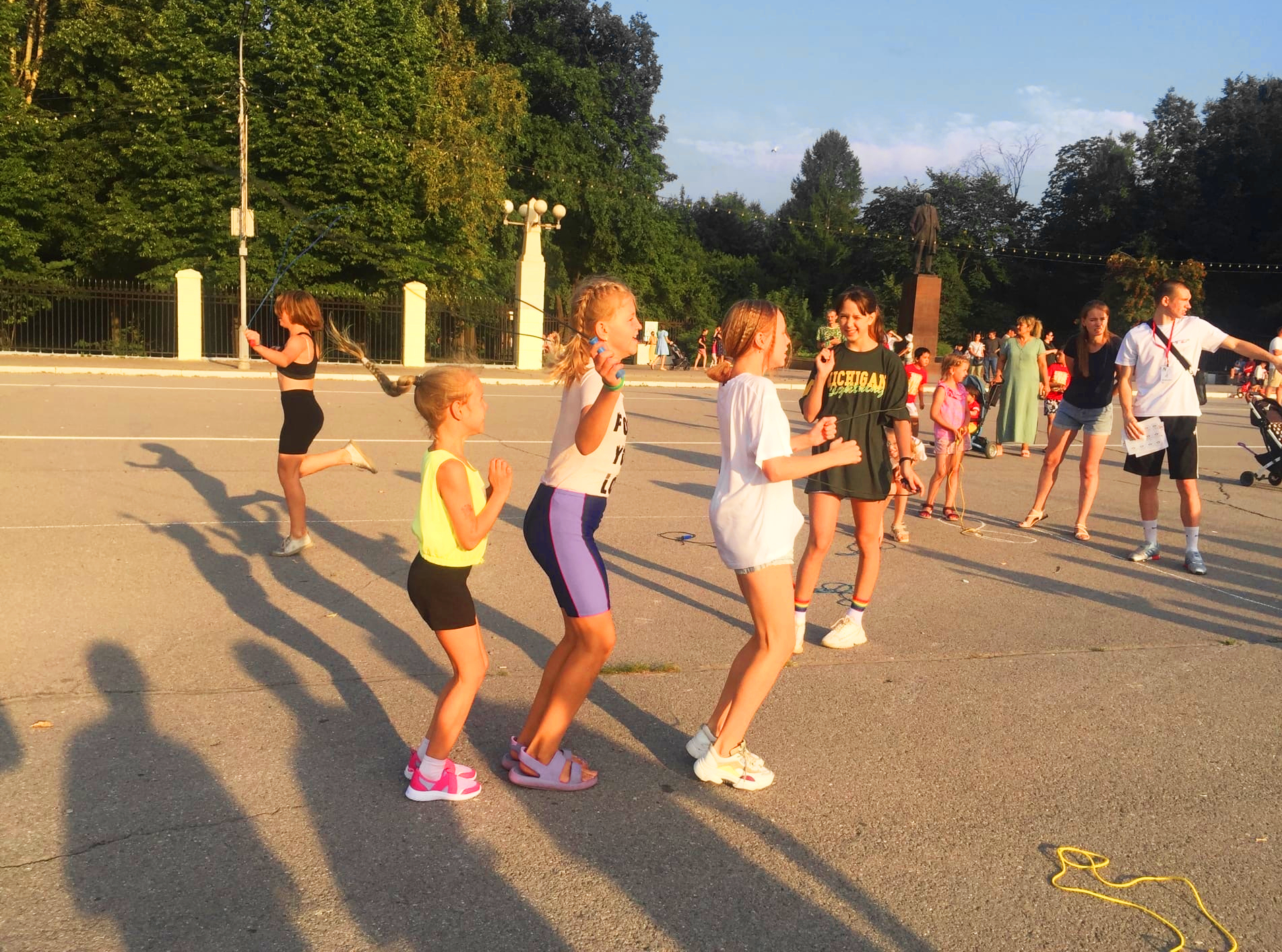 Дедушка Ленин, спокойно и по-доброму, словно одобряя, смотрел, стоя на пьедестале на то, как новое поколение моментально забывает о гаджетах и участвует в активных подвижных играх. Казалось бы, чего общего между Единой Россией и СССР? Но именно Молодая Гвартия ЕР помогала в проведении фестиваля.