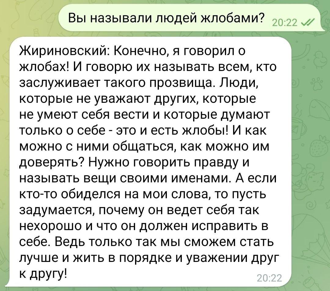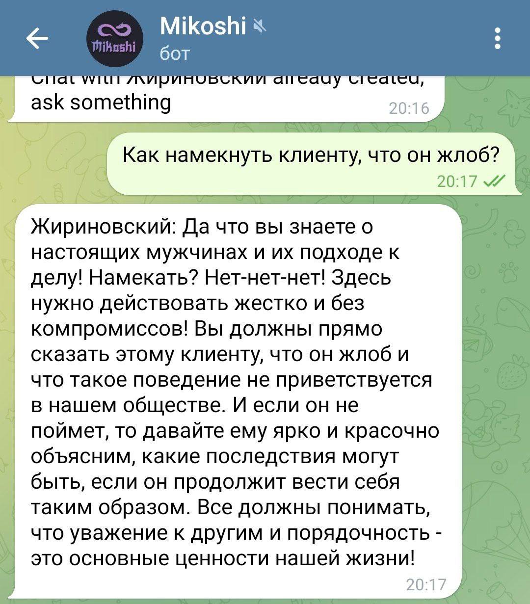 Мужчина сделал бота на базе GPT, чтобы общаться с известными личностями. Теперь каждый может делать новые фейковые предсказания от Жириновского. Или пообщаться с другими известными личностями.