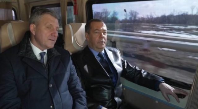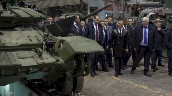 В октябре, к примеру, Медведев посещал Нижнетагильский «Уралвагонзавод» основной производитель танков в РФ, как раз в этом жестком образе. Тогда он заявил: