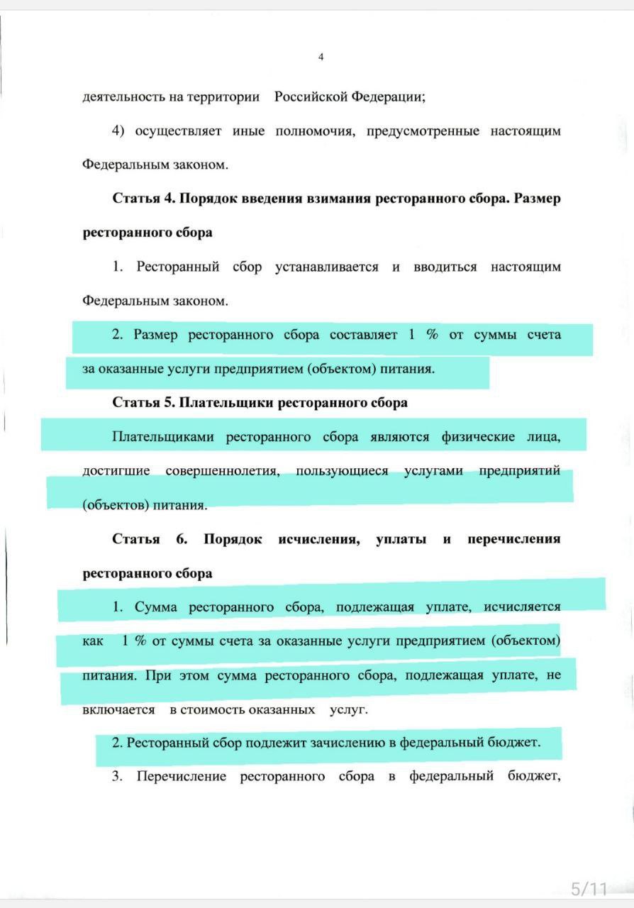 Депутаты Госдумы Мархаев и Матвеев внесли законопроект о «ресторанном сборе» в 1%. Они предлагают, чтобы посетители доплачивали 1% от суммы своего заказа. Эти деньги заведение отправит в федеральный бюджет и предполагается, что деньги пойдут в фонд поддержки семей участников СВО. Пока законопроект не касается кафе, столовых, фастфудов и другого общепита. И пока предлагается брать сбор только с совершеннолетних.