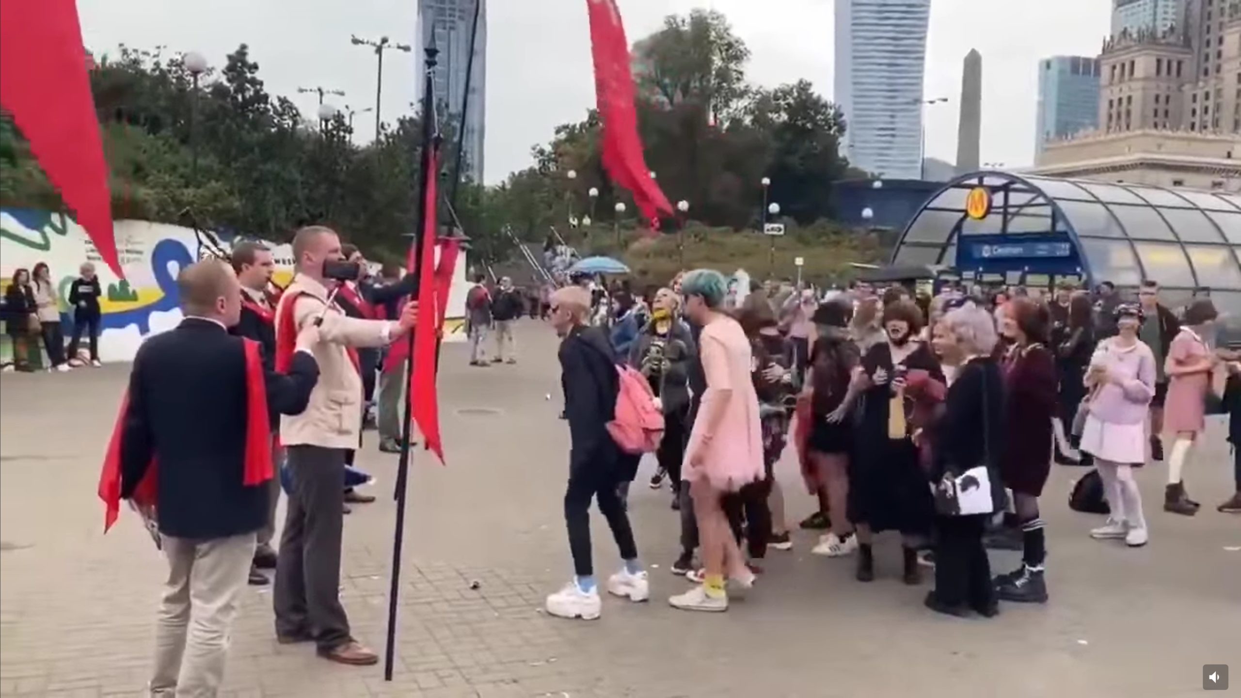На видео обычное поведение извращенцев - леваков при встрече с нормальными людьми.