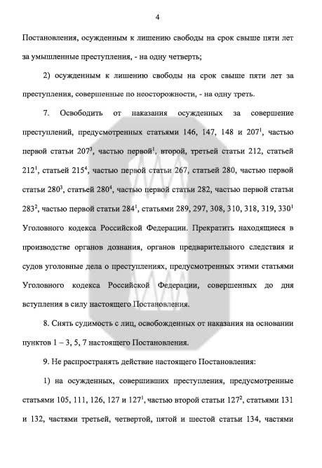 Также предлагается амнистировать по некоторым категориям преступлений участников боевых действий, несовершеннолетних, женщин с несовершеннолетними детьми или детьми-инвалидами, мужчин старше 55 и женщин старше 50 (здесь дискриминация мужчин), и инвалидов.