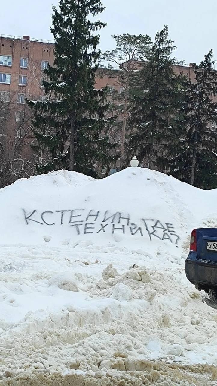 И некоторые жители для решения снежной проблемы обратились непосредственно к мэру города. Фамилия этого мэра Кстенин и именно ее написали люди на разных снежных завалах с призывом к мэру убрать снег. Мэр собственную вину за заснеженный город не признал, перекладывая ее на управляющие компании: