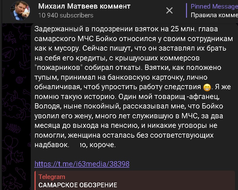 А вот скрин с телеграм-канала депутата Госдумы Матвеева. Тот вспомнил историю, связанную с генералом.