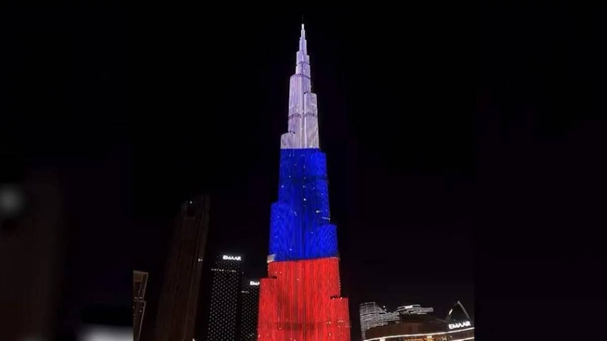 По информации агентства WAM, опубликованной в социальной сети Х, самая высокая башня в мире, построенная в Бурдж-Халиф- Объединённые Арабские Эмираты, в связи с терактом, произошедшим в московском «Крокус Сити Холл» окрасилась в цвета государственного флага Российской Федерации.
