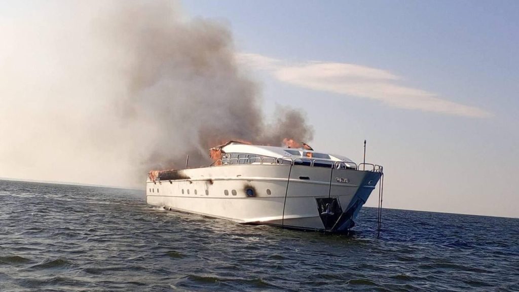 Яхта полностью сгорела и затонула. Будет ли оно мешать судоходству, пока не известно.