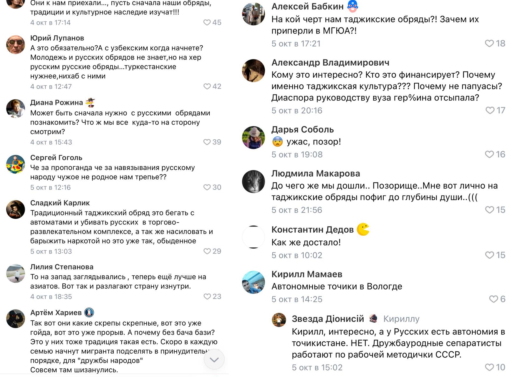 Таджики не только проживают на Вологодчине, но имеют свою автономию, которая получает деньги из областного бюджета на пропаганду таджикского образа жизни. Получив такую победу, таджики пошли танцевать и рекламировать себя среди местных девушек в институт МГЮА в Вологде.
