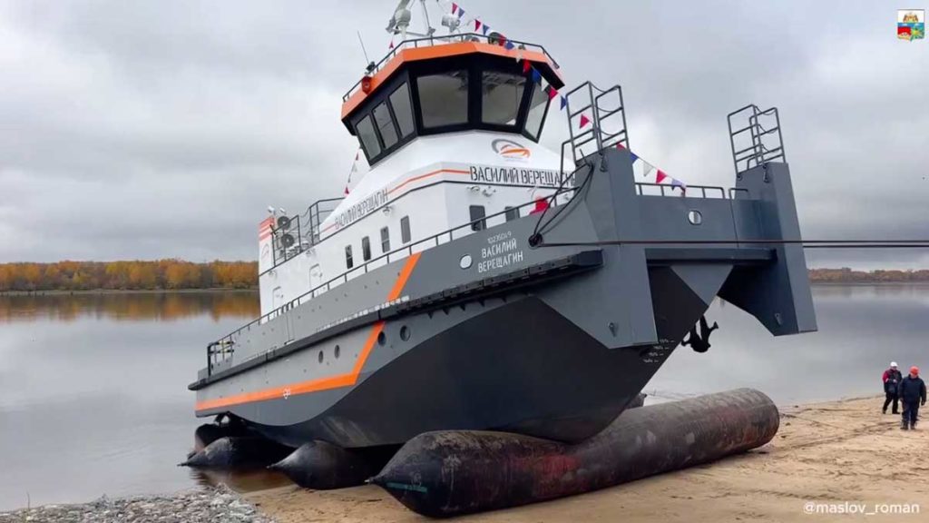 На Череповецком судостроительном заводе спущен на воду буксир «Василий Верещагин»