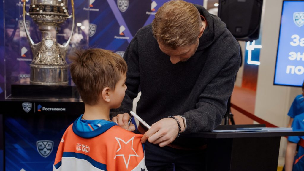 В рамках экспонирования олимпийский чемпион и двукратный обладатель Кубка Гагарина Сергей Андронов оставил свои автографы на 450 картах и хоккейных атрибутах, включая шайбы, шарфы, шлемы и щитки.