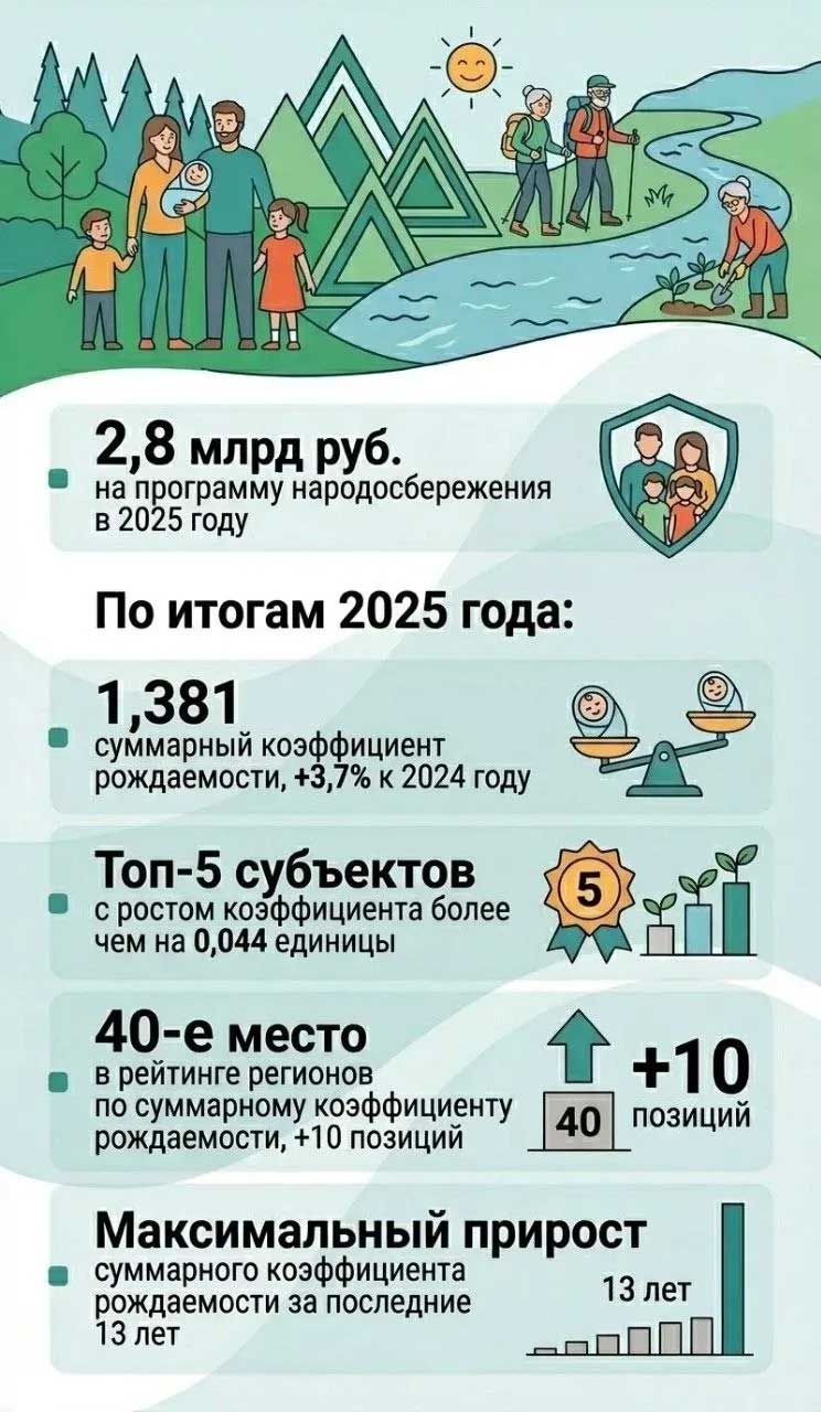 Издание также обращает внимание на позитивные демографические изменения. Так, суммарный коэффициент рождаемости в 2025 году достиг 1,381 — это лучший показатель за последние 13 лет. По этому критерию область поднялась на 40-е место в стране, улучшив позиции сразу на 10 пунктов.