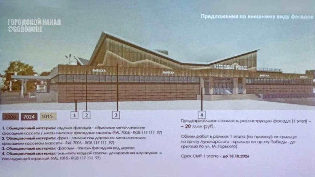 Предварительная стоимость первого этапа работ по обновлению фасада оценивается в 20 миллионов рублей. В отделке планируется использовать панели и ламели с текстурой дерева, а также объемные металлические фасадные кассеты, что придаст зданию современный и аккуратный внешний вид.